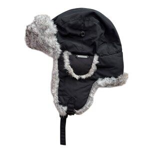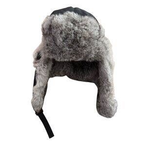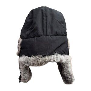 Crown Cap Rabbit Fur Lined Trapper Hat Black Hunter Aviator Winnipeg Winter