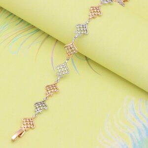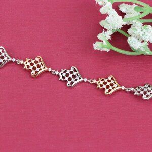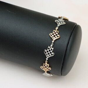Elegant bracelet featuring alternating rose gold and silver crown motifs, delicately adorned with sparkling cubic zirconia stones.
