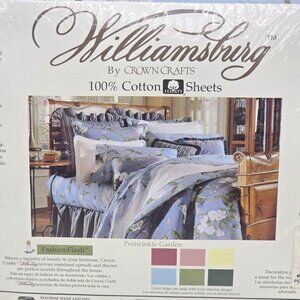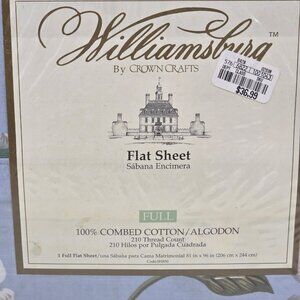 Crown Crafts Full Flat Sheet Williamsburg Periwinkle Garden Blue Floral Cotton