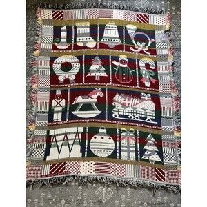 Crown Crafts Christmas Reversible Tapestry Blanket Fringed Woven Throw