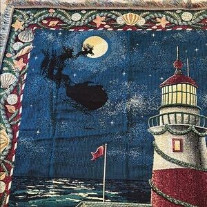 Crown Crafts Throw Blanket Lighthouse Christmas Santa Nautical Holiday Tapestry