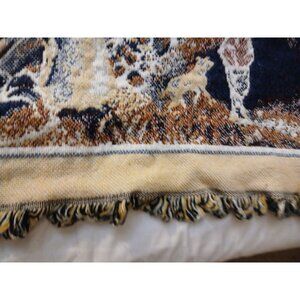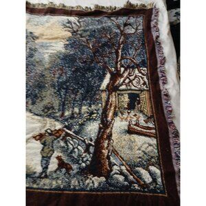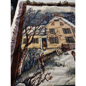 Crown Crafts Winter Scene Sleigh Ride Farm House Throw Blanket Tapestry Vintage