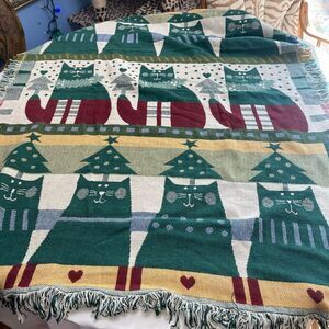 Crown Crafts Cat Kitty Christmas Cotton Throw Blanket VTG Rare