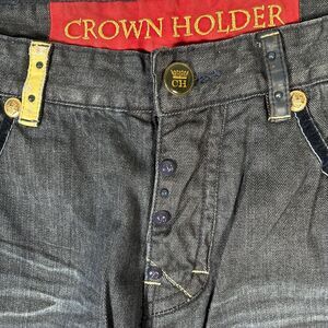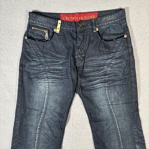 Crown Holder Jeans Men Size 36 Fit 36x33 Wide Leg Hip Hop Y2K Embellished Velvet