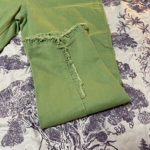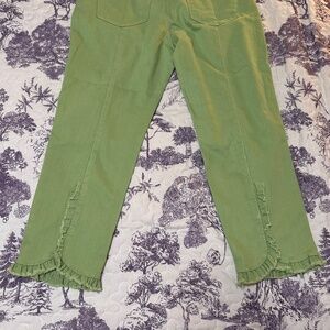 Crown & Ivy size 10 petite with tags. Super cute sage green cropped skinny fit jeans with ruffled hems and a ruffle detail on the back of jeans as well.