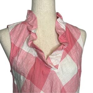 Crown & Ivy 100% Linen Pink and White Gingham Sleeveless Shirt
