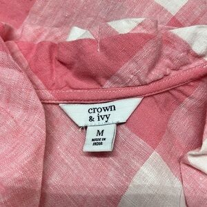 Crown & Ivy 100% Linen Pink and White Gingham Sleeveless Shirt Size Medium