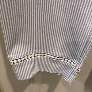 Crown & Ivy 14P Blue and White Vertical Stripe Pull On Pants Crochet Hem NWOT