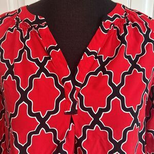 Crown & Ivy 3/4 Sleeve Peasant Top Petite Med Red and Black Print