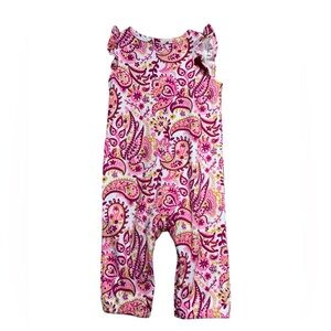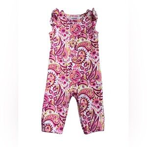 Crown & Ivy Baby Pink and Yellow Paisley Jumpsuit size 6 months.