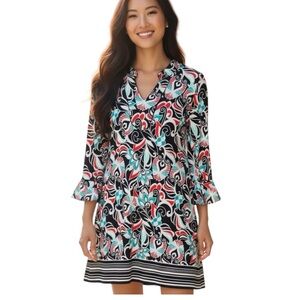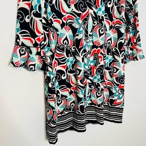 Crown & Ivy Bell Sleeve Split V-Neck Floral-Print Dress. Size Large.