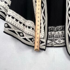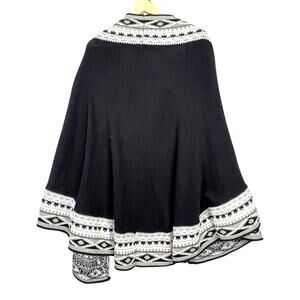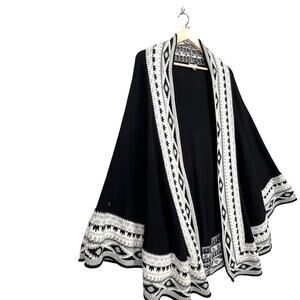 Crown & Ivy Black Cream Cape Poncho Knit Long Open Cardigan Sweater One Size