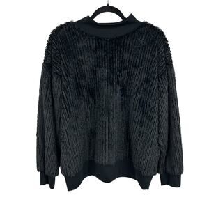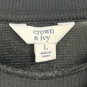 Crown & Ivy Black Fuzzy Knit Ribbed Crewneck Pullover Sweater Womens Large