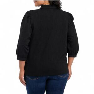 Crown & Ivy Black Jacquard Top Blouse Plus 4X Ruffle V-Neck 3/4 Sleeve NWT