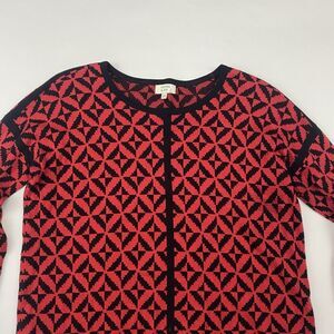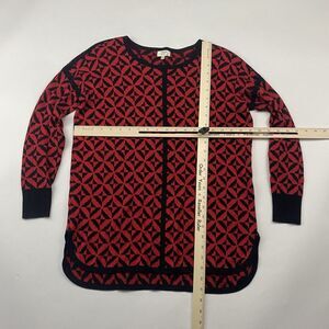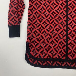 Crown & Ivy Black Red Geometric Pullover Sweater Dolman Sleeve Round Hem Sz XS