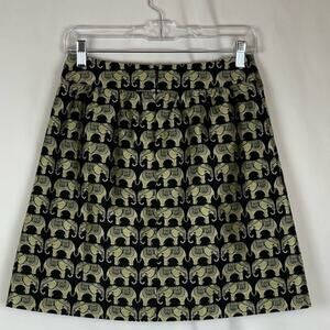 Crown & Ivy Black W Metallic Lime Green Elephant Party Event Skirt NWOT Size 2P