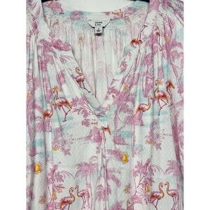 Crown & Ivy Blousy Pink Flamingo Pullover Top Summer Beachy Tropical Size Small