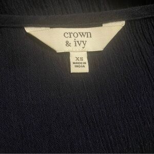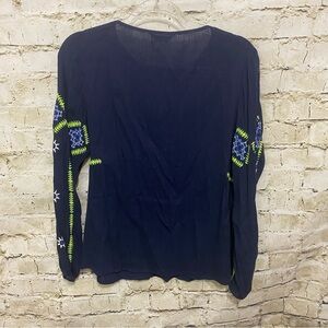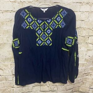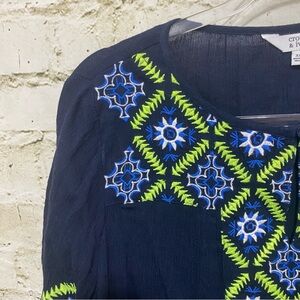 Crown & Ivy Womens XS Blue Green Floral Embroidered Keyhole Tissue Top in excellent used condition. No stains, tears or rips.