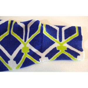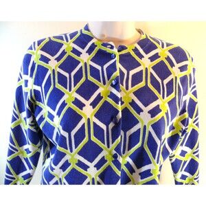 Crown & Ivy Blue Lime Green Geometric Cotton Blend Cardigan Sweater size SMALL
