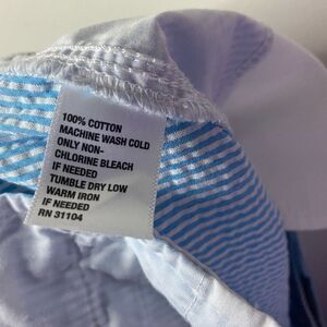 Blue and white seersucker crop pants from Crown & Ivy. 100% cotton. Size 6. Approximate flat lay measurements- Waist: 16” across. Rise: 8.5”. Inseam: 24”. Gently preowned condition with no tears or stains.