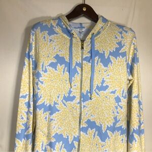 Crown & Ivy Blue Yellow Floral Cotton Spandex Hoodie Size Medium Nwt