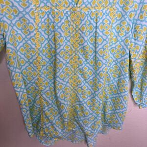 Crown & Ivy Blue and Green Peasant Blouse Small