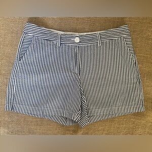 Crown & Ivy Blue and White Striped Seersucker Shorts, Size 12, Pockets