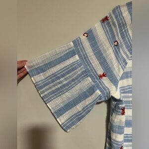Crown & Ivy Blue/White Gauzy Lightweight Embroidered Striped Dress Size XL