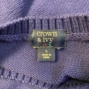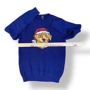 Crown & Ivy Boys Blue Intarsia Santa Dog Christmas Crew Neck Sweater Size S