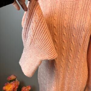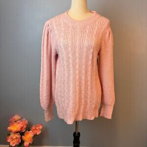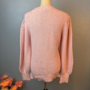 Crown & Ivy Cable Knit Sweater Balloon Sleeve Small Pink Old Money Balletcore