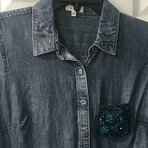 Crown & Ivy brand, denim shirt with jeweled pocket. Super soft denim, in excellent condition, worn once!