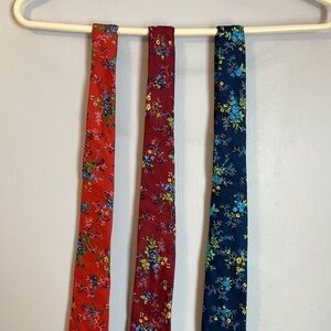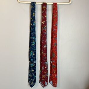 Crown & Ivy Chapel Flowers Tie Collection Red (Salmon color) Burgundy and Navy. Red is more of a salmon color to me. All 100% cotton ties. Great floral design. Three color bundle. Might be little wrinkling from being tied and from storage.