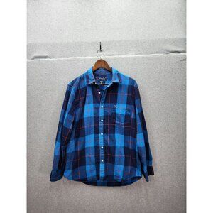 Crown & Ivy Classic Fit Blue Plaid Button-Down Shirt Medium