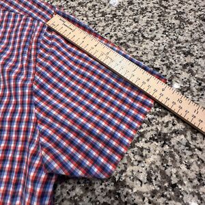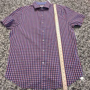 Crown & Ivy Classic Preppy short sleeve shirt Mens Sz L Red/Blue plaid Dadbod