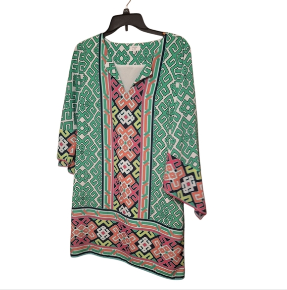 Crown & Ivy Colorful Abstract Geometric Scarf Sleeved Dress Ladies 8 Lunch date