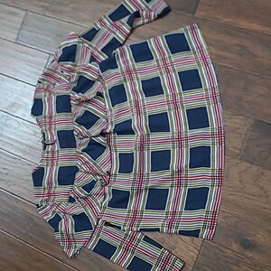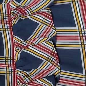 Crown & Ivy Colorful Plaid Semi Sheer Top with Ruffled neck size XL