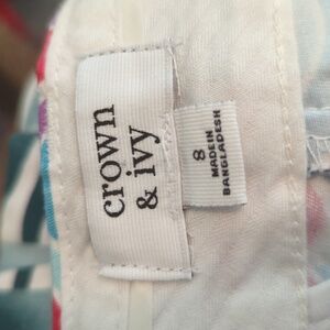 Crown & Ivy Colorful Retro 70s Pattern Shorts, 4.5" inseam Women's Size 8 • Materials: 98% cotton, 2% spandex