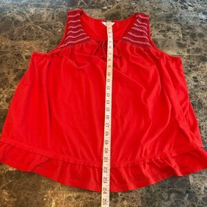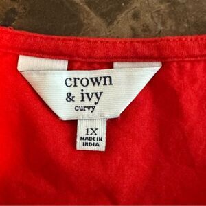 Crown & Ivy Cotten Blend Boho Tunic Top Ruffle Hem 1X Embroidered Detail