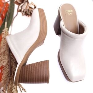 Crown Ivy Cream Chunk Heel Mini Platform Mule Clogs Sz 9m