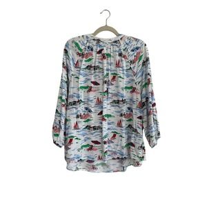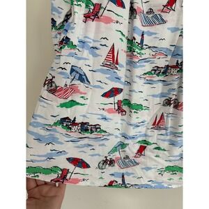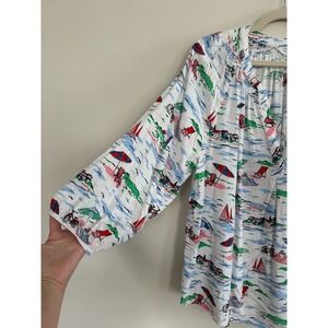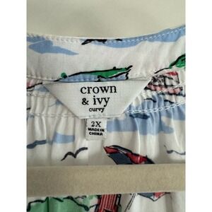 Crown & Ivy Curvy Beach Scene Button Up Top Size 2X Wearable Art Vacation Coast