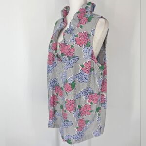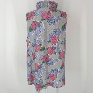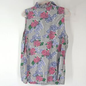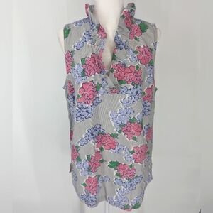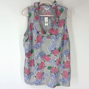 Crown & Ivy Curvy Blue Pink Floral Striped Ruffle Neck Sleeveless Blouse 1X NWT