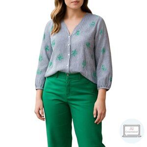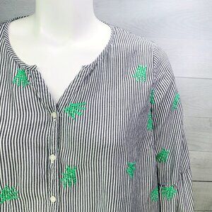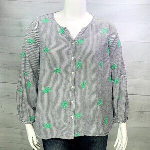 Crown & Ivy Curvy Womens Peasant Top Split Neck Gray Stripe Embroidered Size 2X