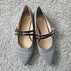 Crown & Ivy Sahara flats. Black white plaid. Pointy toe.