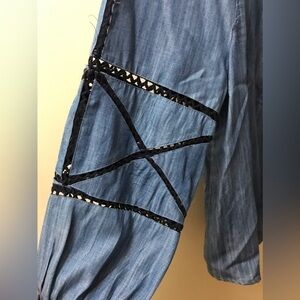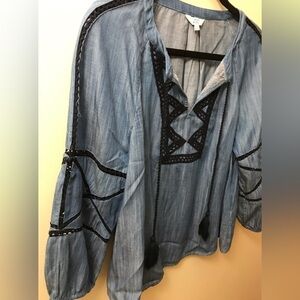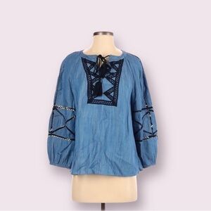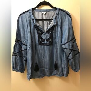 Crown & Ivy Denim Embroidered Long Sleeve Blouse. Size Small