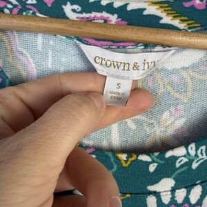 Crown & Ivy Dress Womens Small Green Paisley Maxi Short Sleeve Pockets Stretch