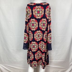 * Crown and Ivy Womens Suzani Print Shift Dress Sz OX Round Neck Lace Stretch
