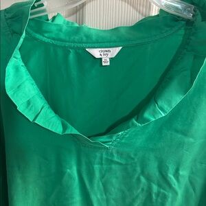 Crown & Ivy Emerald Blouse with Ruffle Detail