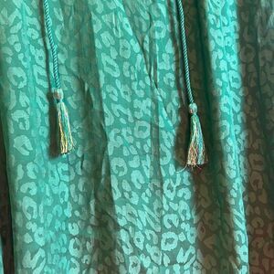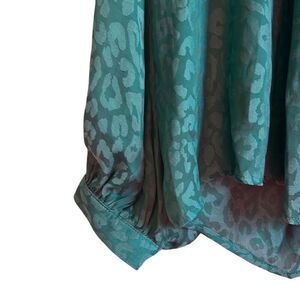 Crown & Ivy Emerald Green Leopard Print Long Sleeve Tassel Blouse