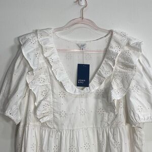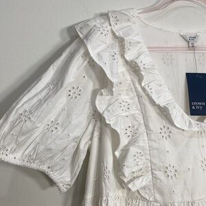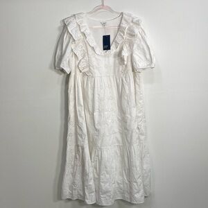 Crown & Ivy Eyelet Midi Dress Cottage core Cotton Pockets Women's 2X White