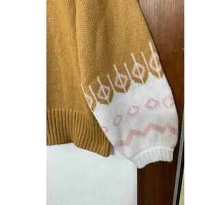 Crown & Ivy Fairisle Sleeve Pullover Sweater Brown Pink Size Large